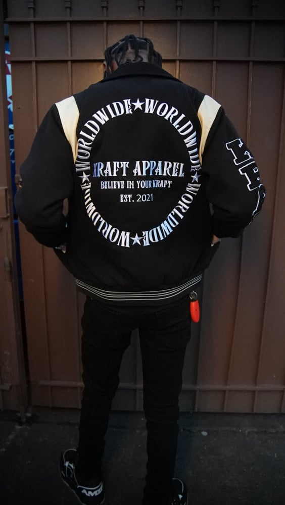 Black “Worldwide” Varsity Jacket